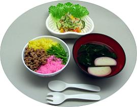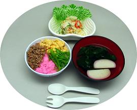一方は普通食、他方は卵除去のアレルギー対応食です。