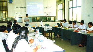 2008/10/25〜11/1、大学125周年記念・社会貢献学生アクティビティの一環として、現地JAICAを通じて「開発途上国における生活環境整備に関する支援」をテーマに、ミャンマー/畜水産省水産試験所(DOF)において、ゼミ生による4日間にわたる第3回セミナーを開催した。
