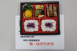 ゼミ生はエルダー層(50代以上の時間購買力に余裕ある層)向けの商品「弁当」開発コンテスに参加しました。近年では、肥満や高血圧、脂質異常症、糖尿病などの生活習慣病が年々増加しています。このような現状を踏まえ、生活習慣病の予防(1食あたりのカロリー、塩分をコントロール)、そして忙しいお父さんたちに充実した食生活を、という願いを込めて考案しました。今までのコンビニ弁当にはないオリジナリティであるか、関東地区の食材(豚肉、大根、小松菜、ひじき、梅)を使用、味付けや調理方法、食材の組み合わせは適切であるか、盛りつけ、彩りなどを考慮するなど、ゼミ生たちはアイディアを出し合い、体にやさしい健康志向、バラエティに富んだお弁当、季節は「春」を想定、提案しました。