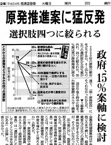 | 新聞:朝日新聞2012年5月29日 朝刊 | 表:「エネルギー論争の盲点」 石井 彰著 NHK出版 |