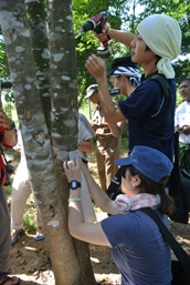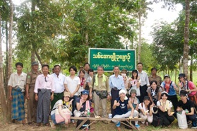 今回は「Agar-woodの人工生産システムの構築」というテーマでセミナーを行いました。ミャンマー農業省の専門家の前で、極度の緊張に耐え、必死にプレゼンにチャレンジしている学生諸君の健気な姿を見ていると、誇らしくもあり、また私自身、教員冥利に尽きる時間を過ごしているという実感に浸ることができました。セミナー終了後のフィールド実験では、35℃の熱帯林の中で流れ出てくる汗などものともせず、ドリルを持って駆けずり回り、アキュラリア樹木に植菌している姿はまさに青春そのものの情景でした。