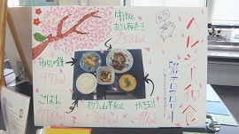 また、7月はオープンキャンパスの準備を中心にゼミ活動を行い、4〜6月の活動報告パネルの作成、そして新たな試みとして昨年度までの「和菓子つくり体験(模擬実習)」に替わり「ランチ提供(給食管理実習の成果報告)」の準備を行いました。
