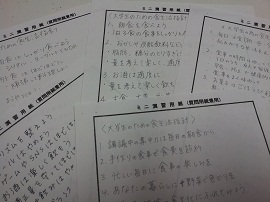 私が受け持つ公衆栄養学の授業で上記を学習した際に、学生に『大学生のための食生活指針』を考えてもらった。健康、栄養のことを学んでいる学生というだけあり、専門的な視点で考えられたものもあったり、大学生ならではのユニークな発想もあったり、私の予想を上回る指針が提出されたので、紹介したい。