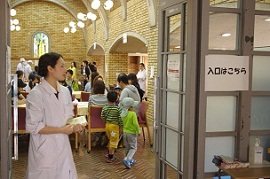 今年4月に学生生活課より、6/8開催のオープンキャンパス・スポーツフェスティバル・創造祭等の合同イベントでアイスクリーム企画の依頼がありました。3.11震災前まで本ゼミでは夏の大学イベントである「ふれあい祭り」に毎年参加していたものの、それ以降規模の大きい企画は実施しておらず不安でしたが、ゼミの3・4年生ともにぜひ実施したいとの強い要望があり、参加しました。当日は(1)製造体験、(2)展示(歴史、原材料、製造原理・方法、栄養成分、クイズなど)、(3)試食の3つのコーナーを設け、一般の来場者の方が学生から楽しんでアイスクリームを学べる企画としました。準備は1ヵ月前より掲示物の作成、レンタル機器の発注、原材料の計算・発注など行い、前日は悪天候の中2グルーブに分け、会場設営と7種類、約600食のアイスクリーム製造を行いました。イベント当日も天候は不安定でしたが、開始直後から多くの方にご来場いただき、13:00過ぎには準備していたアイスクリームが無くなるほど盛況な企画となり、学生も大きく成長したように思います。運搬等お手伝い頂いた職員及び運動部の皆様、ご来場頂きました皆様にこの場を借りて御礼申し上げます。