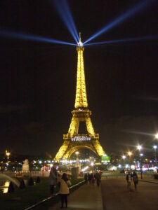 少し前になりますが、私は昨年12月に学会でフランスに行ってきました。その前の月、11月13日には同国で同時多発テロが起こり、120人以上の人々が犠牲になりました。街中には多数の警察官、自動小銃らしきものを装備した軍の関係者たちが警戒に当たり、エッフェル塔(写真)に上るのにも厳しいセキュリティチェックで、夜遅くにもかかわらず寒い中を長蛇の列ができていました。
