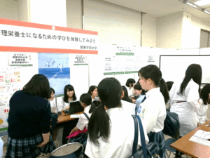 本学科は「管理栄養士になるための学びを体験してみよう」をテーマに「お米の鮮度判定」、「体脂肪率や筋肉量の測定」、「コンピュータを用いた食事バランスの判定」を実施し、本学のブースには約400名の高校生に来場いただきました。ご来場いただきました皆様ありがとうございました!