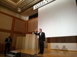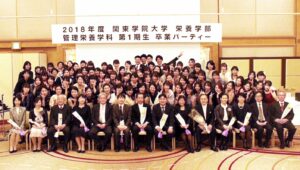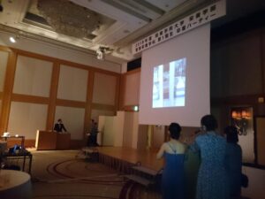 夕方からはロイヤルパークホテルに会場を移して、卒業パーティーが行われました。学業や卒業研究において優秀な成績を修めた学生に贈られる各賞の授賞式、抽選大会など、大いに盛り上がりました。また、学生生活の思い出が詰まった写真が上映されると、会場は笑顔と笑い声で満ち溢れていました。