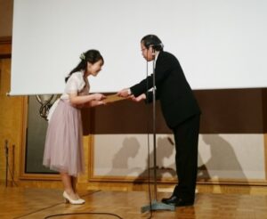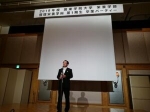 夕方からはロイヤルパークホテルに会場を移して、卒業パーティーが行われました。学業や卒業研究において優秀な成績を修めた学生に贈られる各賞の授賞式、抽選大会など、大いに盛り上がりました。また、学生生活の思い出が詰まった写真が上映されると、会場は笑顔と笑い声で満ち溢れていました。