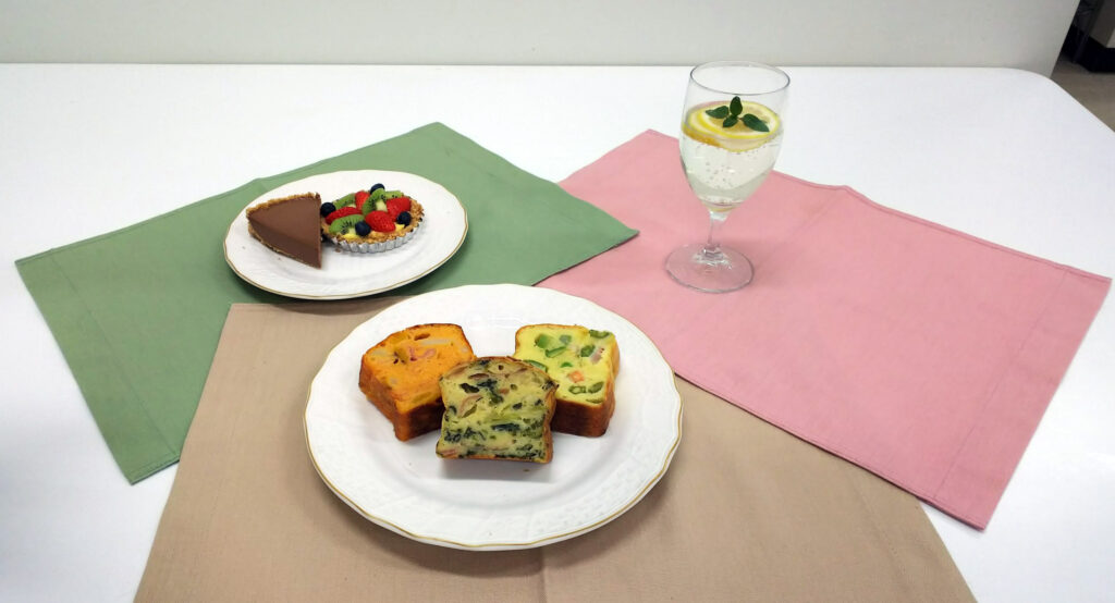 「ウエルカムパーティー」ケークサクレ3種、チョコレートチーズケーキ、ミニフルーツタルト、レモンスカッシュ