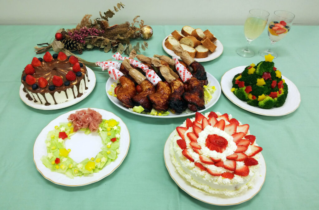 「クリスマス」照り焼きローストチキン、ツリーサラダ、リースサラダ、クリスマスケーキ、フルーツポンチ