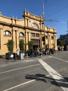 参加学生の大半は、初めての海外旅行で、出発前には十分な準備を行いました。カンタス航空で現地に朝、到着したのですが快晴で、さっそくクイーンビクトリアマーケットを訪れ、現地の生鮮食料品の店を見て回りました。