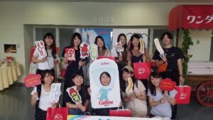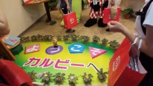 工場見学では、かっぱえびせん、フルグラの製造過程を見学させていただき、その後、工場担当者、研究担当者より、ミーティングルームでカルビー社の名前の由来(カルシウムとビタミン)や製品開発の歴史などについて丁寧に説明して頂きました。