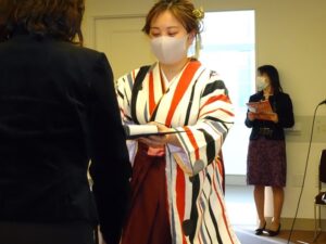 3月24日(水)にパシフィコ横浜 国立大ホールにて卒業式・学位授与式が行われました。当日は晴れ渡る青空の下、春の暖かな陽気は卒業生の門出を祝うかのようでした。全体での授与式終了後は会場を移し、学業や卒業研究において優秀な成績を修めた学生に贈られる各賞の授与式を学部ごとに実施しました。感染症対策をしながら、限られた時間の中での卒業式となりましたが、卒業の喜びを仲間と共感しながら、達成感に満ち溢れた卒業生の笑顔がとても印象的でした。