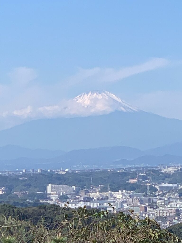 私は年に10回以上、いろんなコースを歩きます。前回のコラムでは、「私のお気に入りは鎌倉天園ハイキングコースで、鎌倉に入ったらその都度まだ行っていないスポットを目指すことにしています。」と書きましたが、天園はマップの左上の隅の方にあります。この10月には、氷取沢市民の森を抜け、いっしんどう広場を通って港南台まで行ってきました。A1の地点(見つけられますか?マップの右半分上半分のエリアにあります)に着くと、写真にあるように、思いもよらぬ綺麗な富士山を目にすることができました。