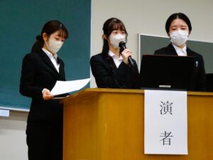 11月19日(土)に卒業研究発表会を開催しました。昨年度に引き続き、新型コロナウイルス感染症の影響も心配されましたが、今年度も感染予防に十分留意しながら対面形式で行うことができました。