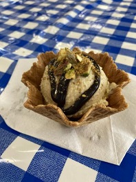 8月5・6日にはオープンキャンパスが開催され、3年生のゼミ生と卒業生も手伝ってくれ、3年ぶりにアイスクリーム製造体験コーナーを実施しました。私のゼミのブースだけで2日間で約340名と多くの方にご来場いただき、ありがとうございました。学生も多くの方と接することで社会勉強になったと感謝しています。当日は猛暑の中突然の大雨などありましたが、学生が2か月ほど試行錯誤し完成した新作アイスクリーム「チョコ・ピスタチオ味」に多くの方から高評価をいただき、学生も有意義な時間になったと思います。