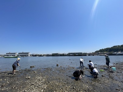 皆さんこんにちは。栄養学部の1年生は春学期に大学の授業に慣れる教養ゼミナール(教ゼミ)という必修科目があり、食品学・食品加工学などを担当する私の教ゼミでは、今年も大学から徒歩5分の平潟湾にアサリの生態調査に行ってきました。学校にはもちろん学外活動届を提出し、アサリの生態調査として、授業時間にちょうど潮が干潮となる日時を調査し、5月16日(火)の1講時にアサリを採取しました。