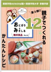 ゼミ活動の一環として、無印良品の商品をアレンジしたレシピ冊子『親子で作れる簡単レシピ おにぎりと味噌汁』を作成しました。ゼミ生は、レシピ作成にあたり論文や資料を読み込み、現在の子供達の食生活上の課題やその背景について理解を深め、食育としても活用できる冊子を目指しました。また、無印良品の職員の方から企業理念や商品コンセプトについて説明を受け、何度も店舗へ足を運び、おにぎりや味噌汁にアレンジできる商品を探しました。調理実習室にて、グループ内で意見交換をしながら試作を繰り返します。食材の分量や組合せ、調理工程を見直すなど試行錯誤し、美味しくて簡単に作ることができる12品を掲載した冊子が完成しました。