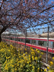 この日は好天でしたので、津久井浜観光農園から津久井浜駅までのミニハイキングコースを歩いた後、一駅だけ京急に乗って三浦海岸駅で下車し、三浦海岸桜まつり(河津桜)の街中を歩いてきました。写真は、京急沿線の道端に咲く菜の花と河津桜です。