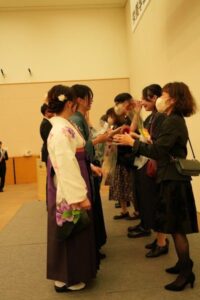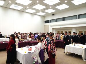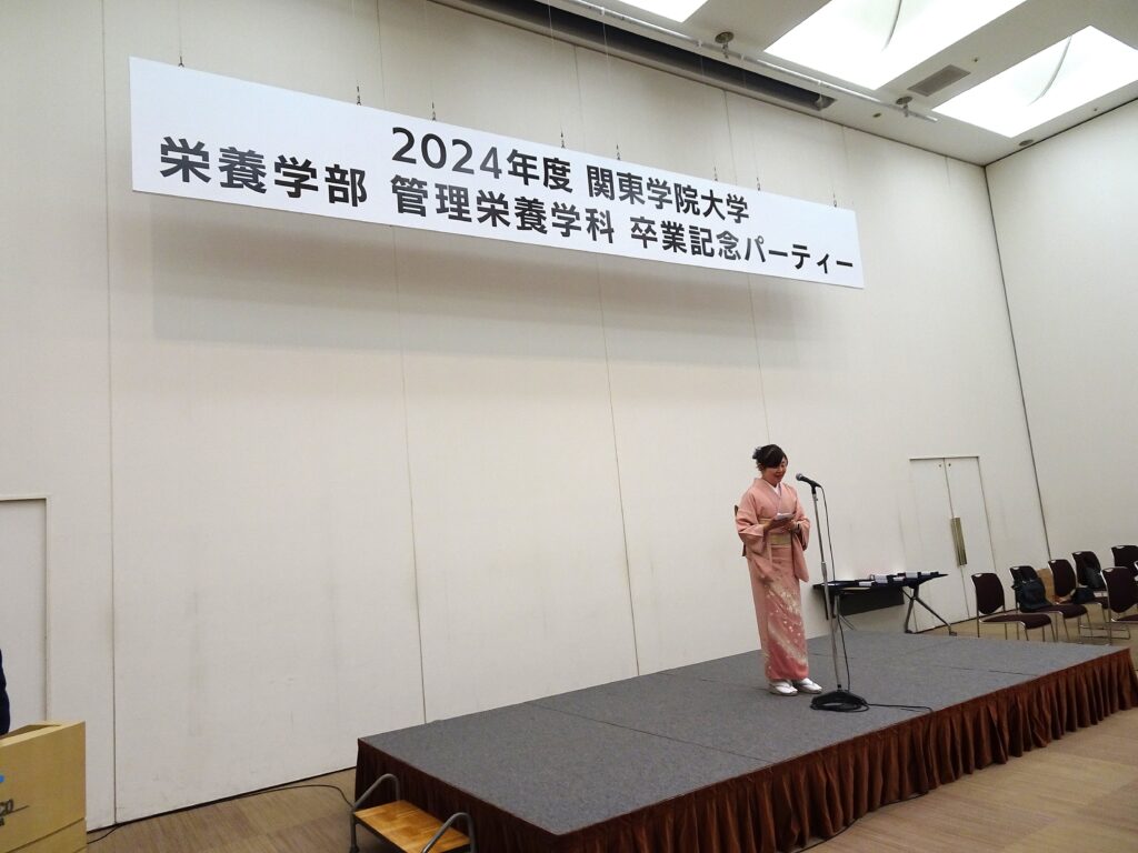 3月24日(月)、パシフィコ横浜の国立大ホールにて卒業式・学位授与式が執り行われました。式典終了後には会場を移し、卒業パーティーが開催されました。パーティーでは、学業や卒業研究で優秀な成績を修めた学生に各賞が贈られ、卒業生たちの努力と成果が称えられました。また、卒業生同士や教職員との交流が続き、歓談の中で学生生活を振り返り、未来への決意を新たにする場となりました。その後の晴れ着姿での記念撮影では、達成感と誇りに満ちた笑顔があふれていました。