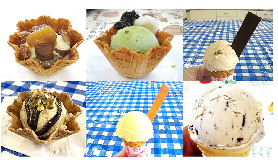 例年2日間実施していた夏のオープンキャンパスが、今年は1日だけの実施となり8月9日(土)に開催されました。津久井ゼミナール所属の3・4年生と5月より準備を始め、今年は栗をテーマに和栗ペーストを練り込んだアイスクリームに、栗鹿ノ子(日本栗)、天津甘栗(中国栗)、マロングラッセ(ヨーロッパ栗)の世界三大栗を添えたマロン・マロン・マロン(写真:左上)を開発し提供したほか、昨年度までの手作り粒あんと白玉団子を添えた抹茶アイス(写真:中央上)、毎年1番人気の生キャラメル&カカオクッキー(写真:右上)、チョコ・ピスタチオ(写真:左下)、紅茶&ラングドシャクッキー(写真:中央下)、ブルーベリー・レアチーズ(写真:右下)の計6種を提供しました。猛暑の中1日だけの開催でしたが240食と多くの方にご来場いただき、開始後瞬く間に行列となりその後途切れることもなくご参加いただき、学生も多くの方と接し説明することで社会勉強になったと感謝しております。誠にありがとうございました。また、毎年、卒業生も多く訪れてくれ、短い時間ではありましたが近況報告など聞けうれしく思っています。ぜひ来年度も夏のオープンキャンパスに遊びにきてください。夕方には毎年ホームカミングデー(学科OB・OG会)も行っており、そちらにもご参加いただけると教職員と話すだけでなく在学生とのつながりもできますので、お待ちしております。